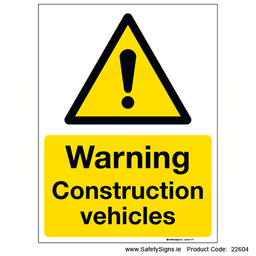 Construction safety signs to help make employees and members of the public aware of the dangers of a building site or construction area or civil engineering project.