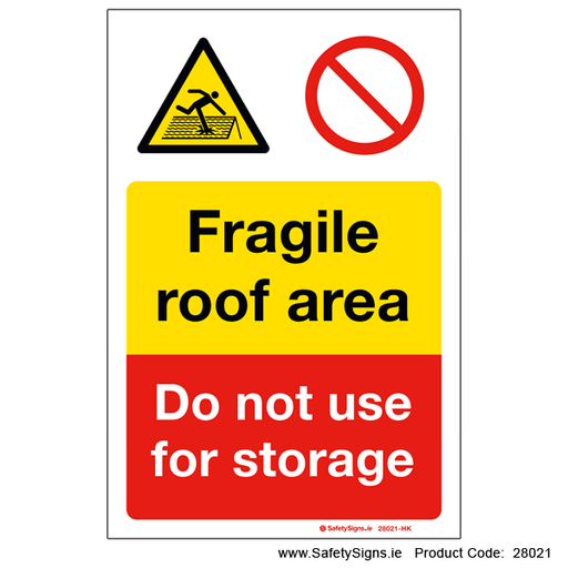 Original price €3.90 - Original price €70.30Original price€3.90 - €70.30€3.90 - €70.30Current price €3.90| /Combination hazard warning and prohibition safety sign which informs the public to take care when on a fragile roof and conveys further information...