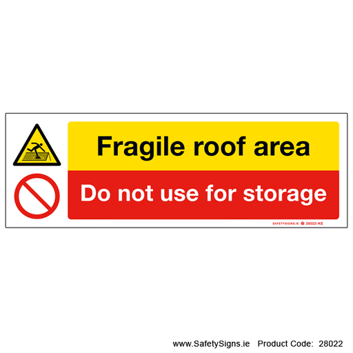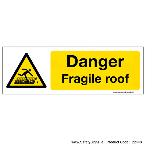 Original price €3.90 - Original price €71.00Original price€3.90 - €71.00€3.90 - €71.00Current price €3.90| /Combination hazard warning and prohibition safety sign which informs the public to take care when on a fragile roof and conveys further information...