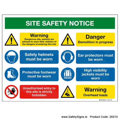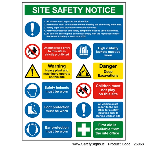 Original price €16.20 - Original price €33.15Original price€16.20 - €33.15€16.20 - €33.15Current price €16.20| /Multi-message information sign, stating, 'SITE SAFETY NOTICE'. Please select the correct sign size and sign material type for the viewing distance ...