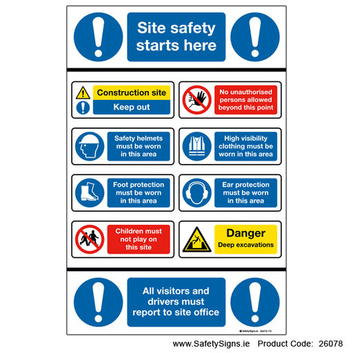 Original price €31.00 - Original price €63.45Original price€31.00 - €63.45€31.00 - €63.45Current price €31.00| /Multi-message information sign, stating, 'SITE SAFETY NOTICE'. Please select the correct sign size and sign material type for the viewing distance ...