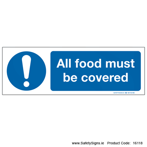 Food must be Covered - 16118Original price €3.90 - Original price €71.00Original price€3.90 - €71.00€3.90 - €71.00Current price €3.90| /This mandatory food safety sign is used to protect and inform the public. Mandatory signs are used to create awareness of actions that must be unde... View full detailsOriginal price €3.90 - Original price €71.00Original price€3.90 - €71.00€3.90 - €71.00Current price €3.90| /