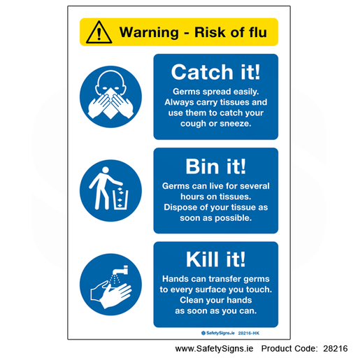 Flu Action - 28216Original price €4.40 - Original price €70.30Original price€4.40 - €70.30€4.40 - €70.30Current price €4.40| /This Health and Safety Sign is used to inform and protect visitors, staff and the public. General Health and Safety Signs and Multi-Message signs u... View full detailsOriginal price €4.40 - Original price €70.30Original price€4.40 - €70.30€4.40 - €70.30Current price €4.40| /