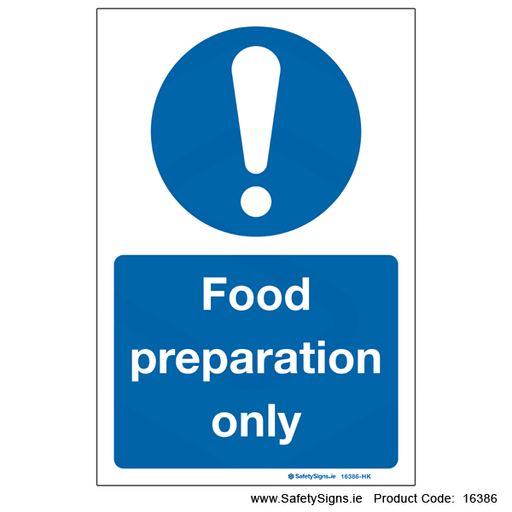 Original price €3.90 - Original price €71.00Original price€3.90 - €71.00€3.90 - €71.00Current price €3.90| /This Food Preparation Only mandatory food safety sign is used to protect and inform the public. Mandatory signs are used to create awareness of act...
