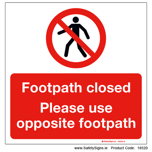 Footpath Closed Use Opposite Footpath - 18520