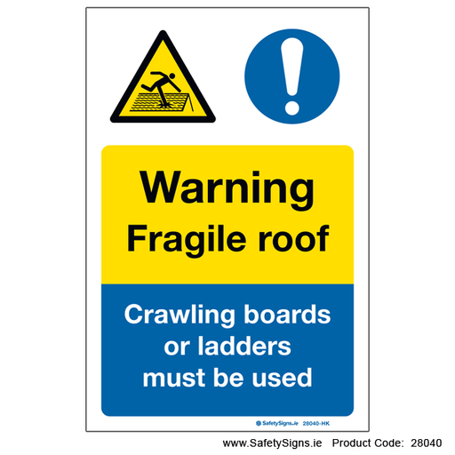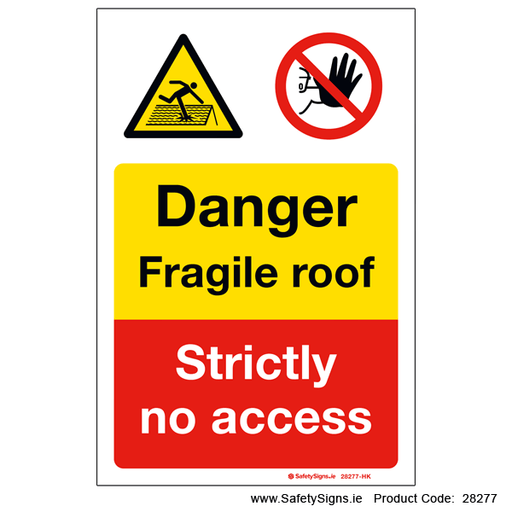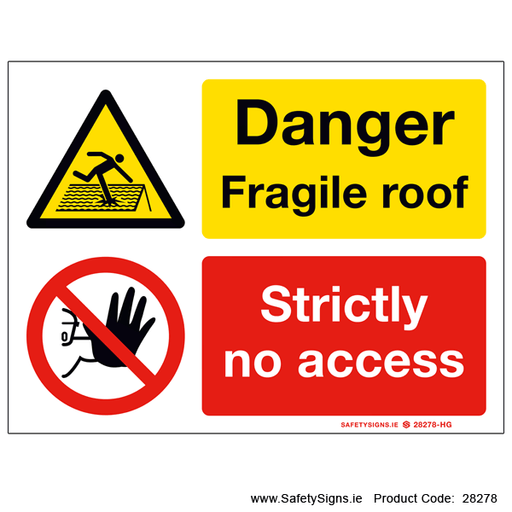 Fragile Roof - 28039Original price €2.20 - Original price €71.00Original price€2.20 - €71.00€2.20 - €71.00Current price €2.20| /This Health and Safety Sign is used to inform and protect visitors, staff and the public. General Health and Safety Signs and Multi-Message signs u... View full detailsOriginal price €2.20 - Original price €71.00Original price€2.20 - €71.00€2.20 - €71.00Current price €2.20| /