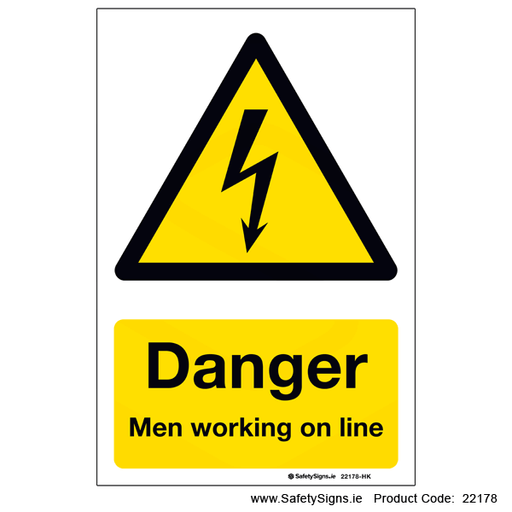 Original price β¬3.90 - Original price β¬71.00Original priceβ¬3.90 - β¬71.00β¬3.90 - β¬71.00Current price β¬3.90| /This Men working on lineΒ electricity warningΒ sign is used to protect and inform the public. Hazard identification signs draw attention rapidly and ...