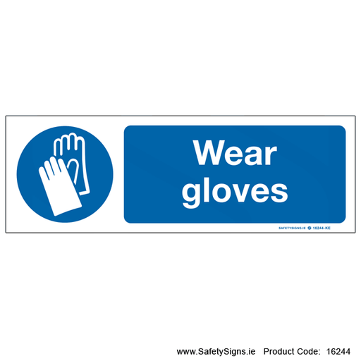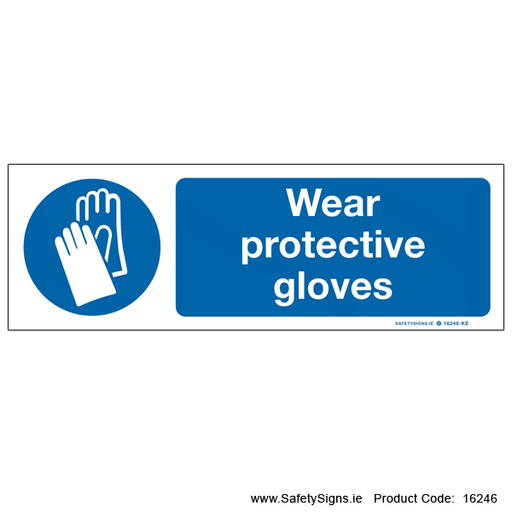 This wear protective gloves sign is used to inform and remind people to wear hand protection where there are potential risks to their hands. Mandat...