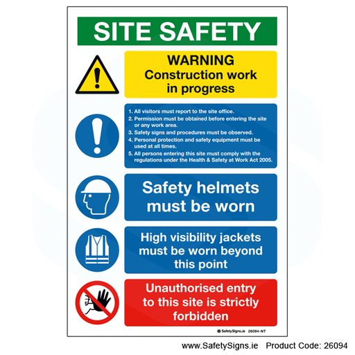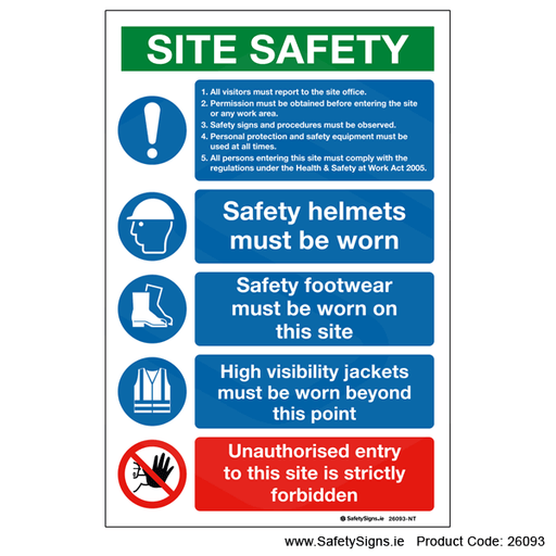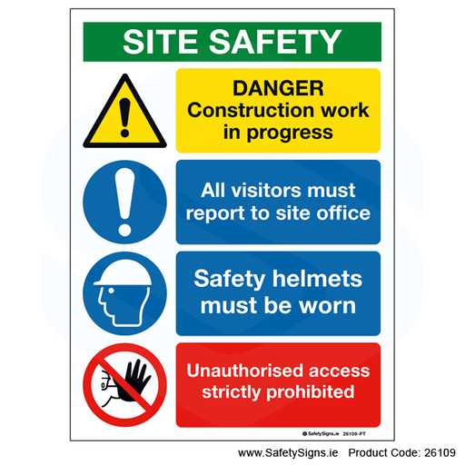 Original price €16.20 - Original price €33.15Original price€16.20 - €33.15€16.20 - €33.15Current price €16.20| /Multi-message information sign, stating, 'SITE SAFETY NOTICE'. Please select the correct sign size and sign material type for the viewing distance ...