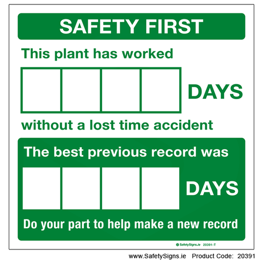 Original price €4.40 - Original price €70.30Original price€4.40 - €70.30€4.40 - €70.30Current price €4.40| /This Number of Days Since Last Accident safety information sign is ideal for displaying information on the last accident that has taken place in th...